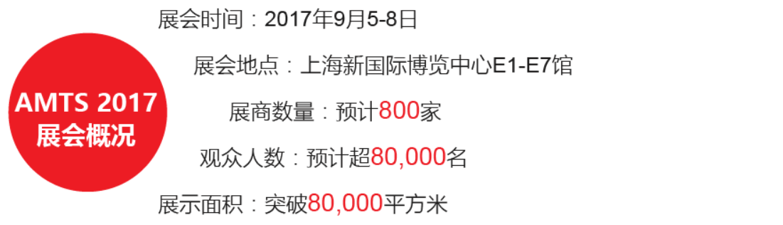 AMTS 2017第十三屆上海國際汽車制造技術(shù)與裝備及材料展覽會(huì)將于2017年9月5-8日在上海新國際博覽中心舉行,將匯聚來自中國/亞洲的知名汽車制造商和一級(jí)供應(yīng)商的工程技術(shù)人員和決策者到場(chǎng)參觀,預(yù)計(jì)將有來自世界各地800家展商參展,展示面積首次突破80,000平方米,吸引80,000專業(yè)觀眾到場(chǎng)參觀。