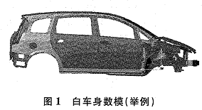 a.產品的數學模型(簡稱數模)。在汽車制造行業中,一般情況下用UG,Catia,ProE等三維軟件均能打開數模(如圖1),并在其中獲取數據或進行深人的工作。在工藝設計過程中,將所有數模裝配在一起就構成了一個整車數模,從數模中可以獲得零部件的結構尺寸、位置關系。由數模還可以生成整車、分總成、沖壓件的各種視圖(包括軸測圖),以及可以輸出剖面圖。