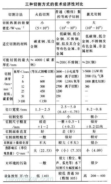 火焰切割、等離子切割和激光切割是熱切割的三種主要方式,其技術經濟性對比如下表所示。