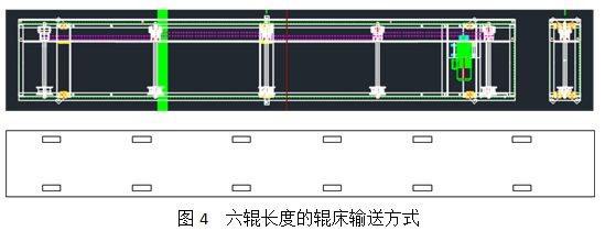 圖4所示的是兩種六輥長度的輥床輸送方式,一種是五輥加一輥的輸送設備,另一種是六輥的輸送設備。兩種方式都可以解決六輥長度的規劃問題,在規劃中就會面臨設備的選型,事實上在規劃中選擇五輥加一輥的方式會更加適合,原因包括:相對于六輥輥床,標準設備五輥輥床制作周期更短;如果與預想尺寸不吻合,五輥輥床調整起來更靈活;舊的線體拆除后,標準件五輥輥床可以利舊。