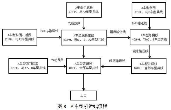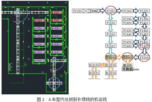 在規劃這兩種車型時,需要額外地考慮A車型到補焊線的機運線(B車型為已有車型,規劃A車型時內總拼和總拼線均已存在)。A車型到補焊線的工藝機運線就可以認為是一種工藝方案變更對機運線造成的需求。