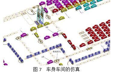 仿真軟件能夠提供全方位的虛擬仿真,并且可以加入隨機事件模擬車間的停線情況,仿真結果可以驗證設置的緩存數量是否合適、設備運行是否存在瓶頸以及多車型切換是否會干擾生產節拍等。例如圖7所示的車間仿真,通過仿真找出了限制車間生產節拍的關鍵設備,可以有依據地進行調整,效果良好。