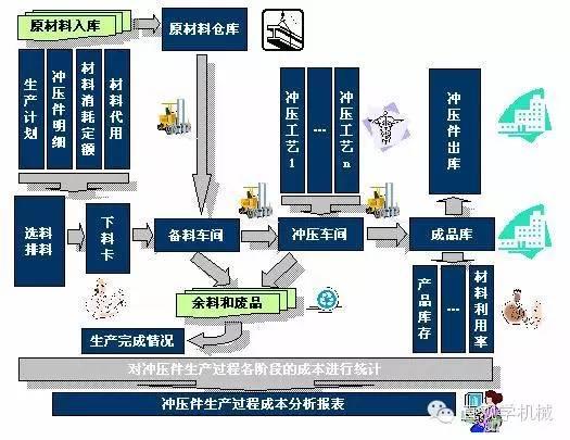 從流程圖上我們可以看到兩道大的工序,上面的工序是車身的成型,主要是沖壓、焊接和涂裝以及內飾。